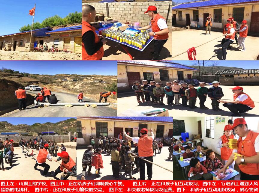 2017年4月7日,在烈日高溫中、在支教老師的積極配合下、在藍(lán)天白云美景里,大家克服崎嶇泥濘的山路,自己動手搬運大風(fēng)刮倒的電線桿,冒著滾落的山石,志愿者們按計劃開展了累計24個小時的公益慈善活動,志愿者們和支教老師們快樂拔河、與孩子們打球互動、與校方商議后續(xù)關(guān)愛計劃、教授護(hù)眼方法和衛(wèi)生知識、親手調(diào)制美味的愛心牛奶、贈與文體用品、開展精神關(guān)愛等活動,志愿者們前 往了三個山區(qū)村小,看望了二十多位老師、四百多位同學(xué),轉(zhuǎn)運傳遞近千斤愛心物資,大汗淋漓中感悟到了:大愛有你 益路同行…