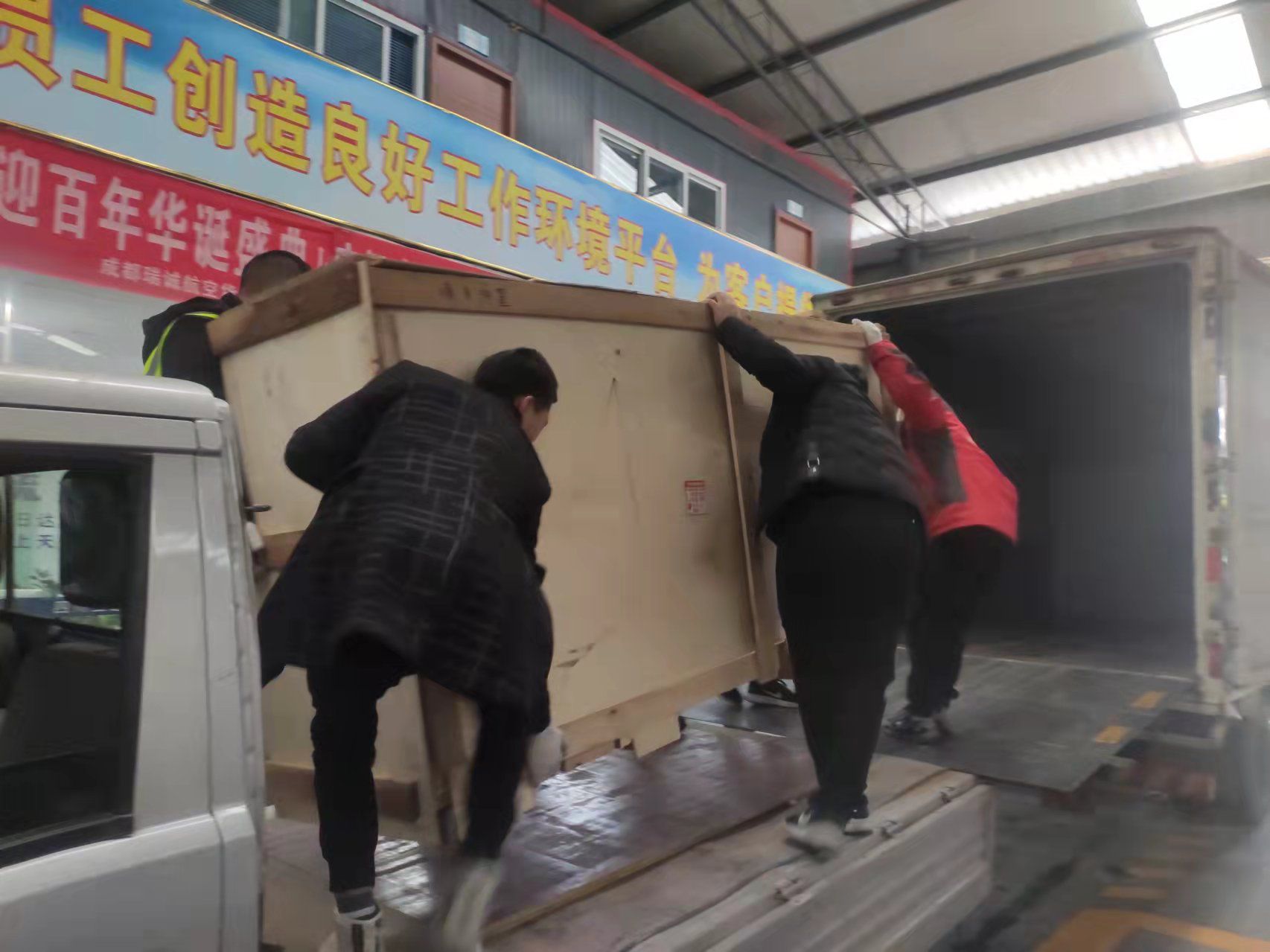 物重心平衡,貨物裝轂必須緊密、安全,嚴禁所裝貨物超出板、箱外。